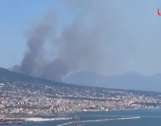 Brucia il Vesuvio, nuovo incendio sul vulcano: la colonna di fumo nero