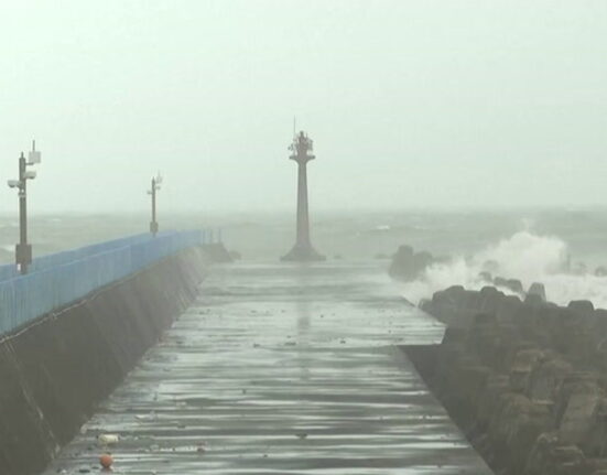 Le onde colpiscono la costa di Taiwan mentre il tifone Gaemi si avvicina