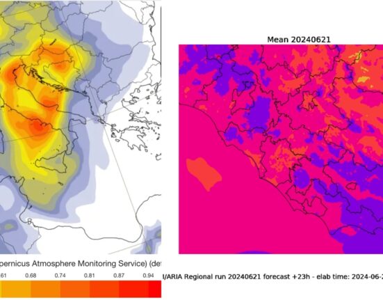 Quanto durerà questo cielo giallo carico di sabbia? Basta consultare le previsioni del satellite Copernicus, servizio che monitora l’atmosfera. Da domani (sabato 22