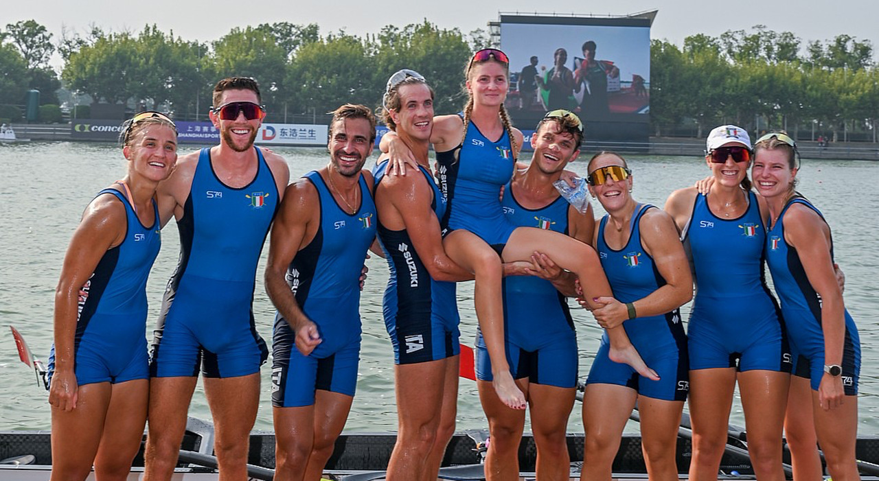 Dopo l’oro nel quattro di coppia l’Italia festeggia una seconda medaglia a Shanghai. Questa mattina, infatti, è arrivato l’argento nell’otto misto, nuova specialità inserita a partire dal 2025 da World Rowing nel programma olimpico. La formazione allestita dal DT Antonio Colamonici, a sorpresa, ha battuto colossi del calibro di Nuova Zelanda, Stati Uniti, Germania e Olanda con a bordo campioni olimpici. Meglio degli azzurri solo la Romania. In barca c’erano Laura Meriano, Elisa Mondelli, Aisha Rocek, Alice Codato, Giacomo Gentili, Andrea Panizza, Nunzio Di Colandrea e Giovanni Codato, con al timone Alessandra Faella. Per Elisa la gioia di poter gareggiare con i compagni di barca del compianto fratello Filippo, Giacomo Gentili e Andrea Panizza.