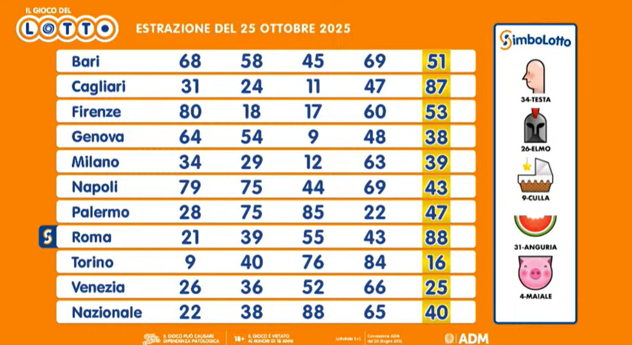 Estrazioni Lotto, Superenalotto e 10eLotto di sabato 25 ottobre: numeri vincenti, quote e montepremi