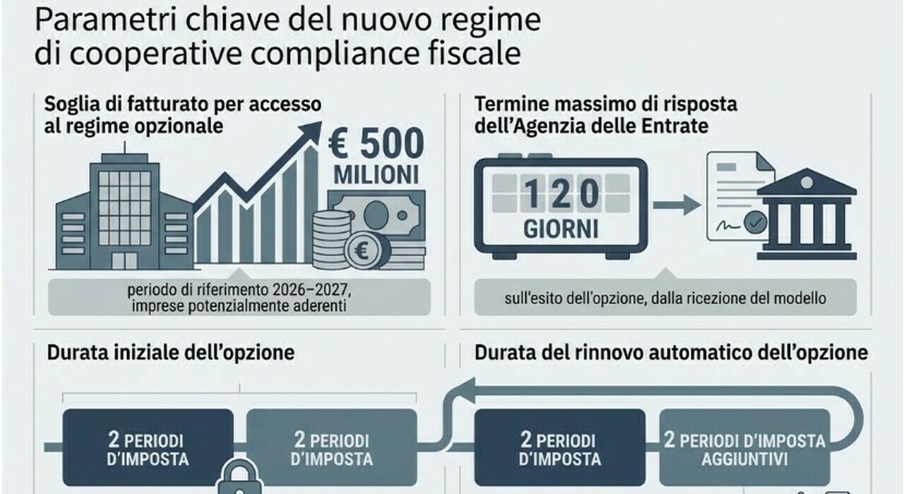 Fare pace con il fisco, istruzioni per l’uso. Al via la possibilità di aderire alla cosiddetta  «cooperative compliance» per le imprese che adottano un sistema di controllo del rischio fiscale anche se hanno un fatturato inferiore a 500 milioni di euro per il 2026 e per il 2027. Con un provvedimento firmato ieri dal direttore, Vincenzo Carbone, vengono infatti fissate le linee guida per i contribuenti interessati e viene approvato il relativo modello di adesione. L’esercizio dell’opzione (art. 7-bis del Dlgs n. 128/2015) consente di ottenere benefici ed effetti “premiali” grazie alla cooperazione rafforzata con l’Amministrazione finanziaria.
